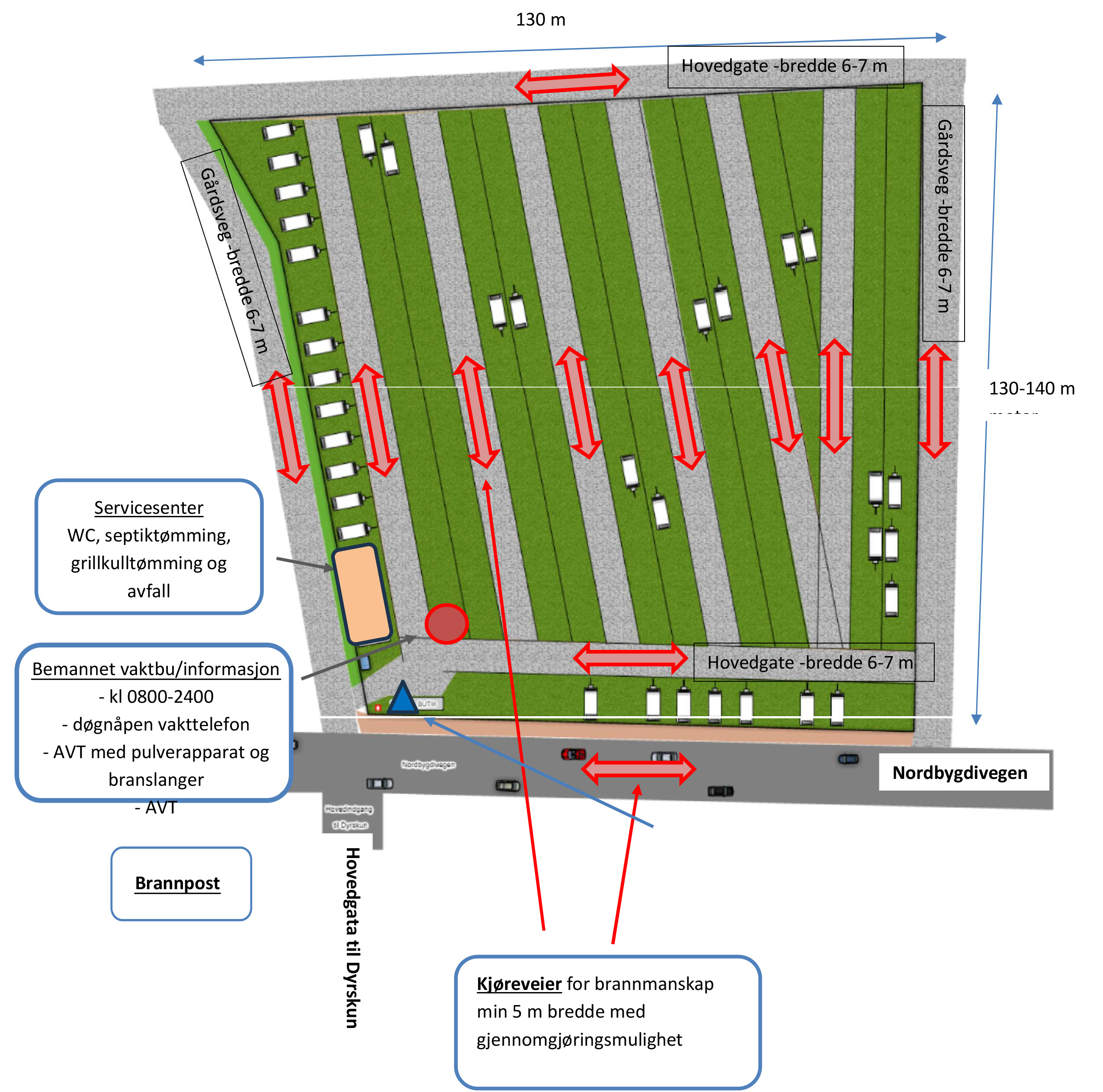 Ved ankomst: Følg skilting til GULT OMRÅDE R6 langs Nordbygdivegen.